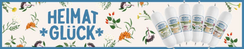 - Heimatglück Hundemenüs aus eigener Manufaktur mit wertvollen Wiesenkräutern und Beeren